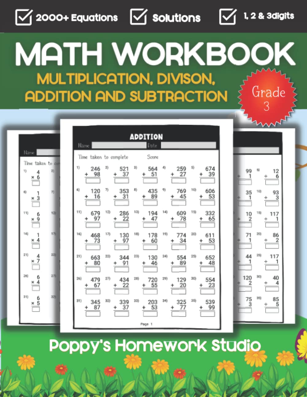 Third Grade Math Workbook For Kids (Suitable for Ages 8-9 Years Old): 3rd Grade Multiplication, Division, Addition And Subtraction Math Drills (1, 2 ...